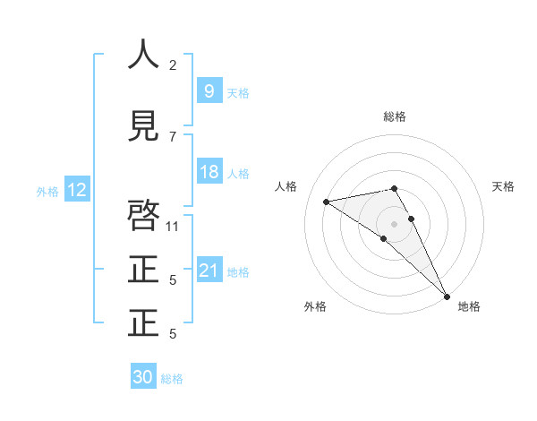 人見 啓正正さんの地格は21画の5点!