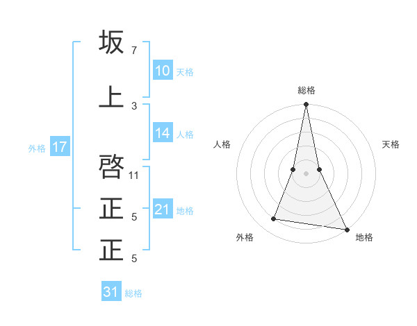 坂上 啓正正さんの総格は31画の5点!