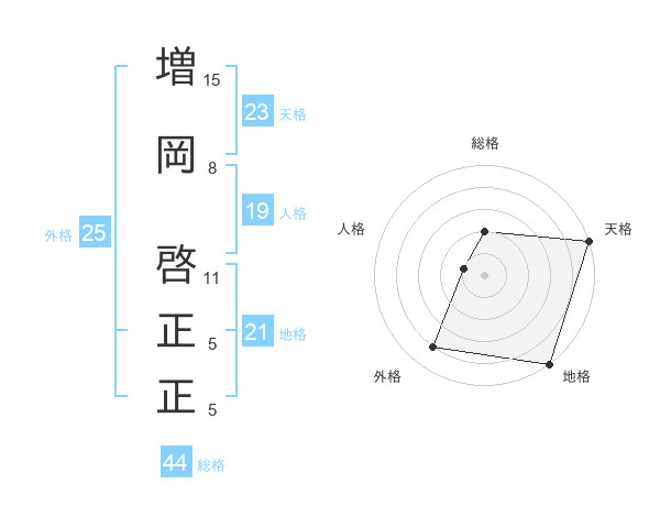 増岡 啓正正さんの天格は23画の5点!
