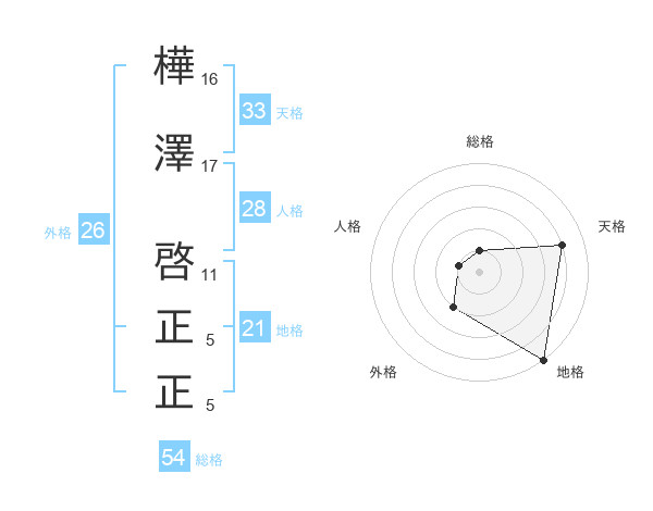 樺澤 啓正正さんを姓名の画数から五運を鑑定