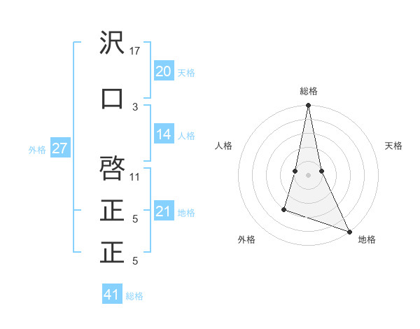 沢口 啓正正さんを姓名の画数から五運を鑑定