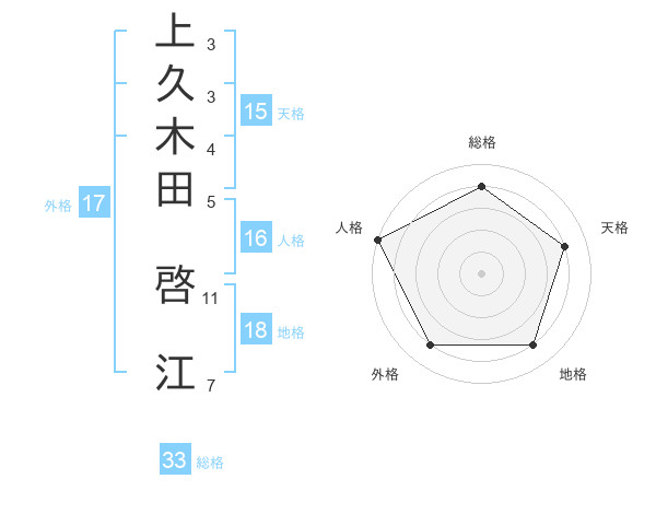 上久木田 啓江さんを姓名の画数から五運を鑑定