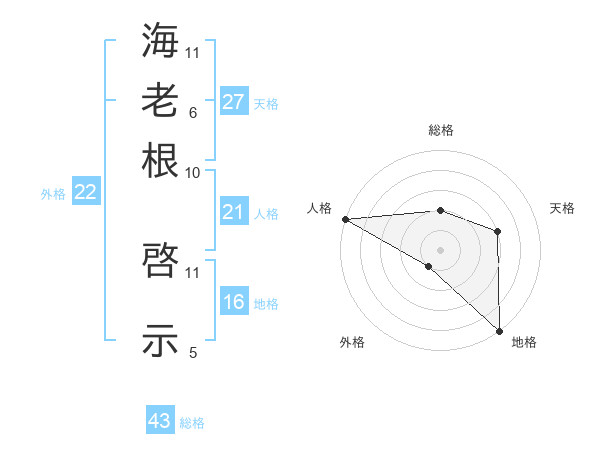 海老根 啓示さんを姓名の画数から五運を鑑定