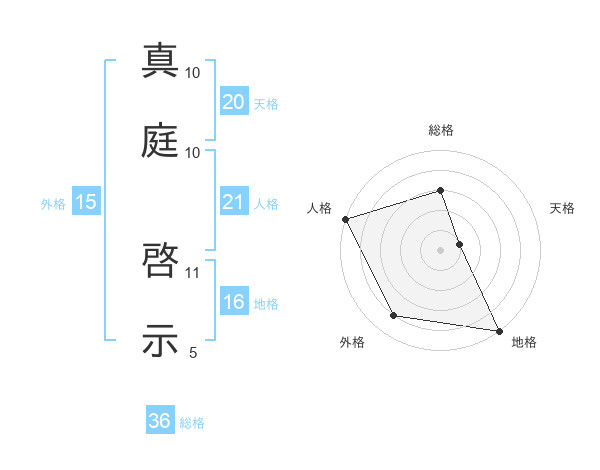 真庭 啓示さんの天格は20画の1点!