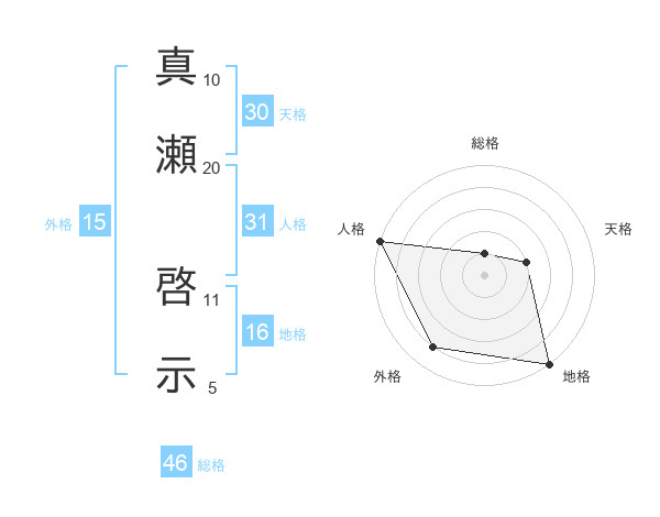 真瀬 啓示さんを姓名の画数から五運を鑑定