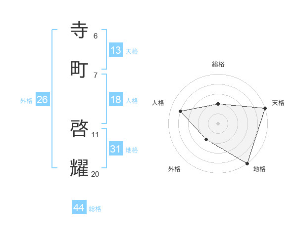 寺町 啓耀さんを姓名の画数から五運を鑑定
