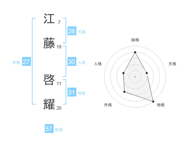 江藤 啓耀さんを姓名の画数から五運を鑑定