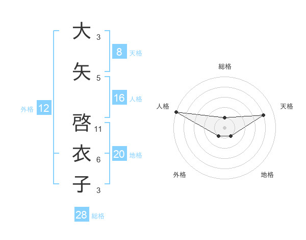 大矢 啓衣子さんを姓名の画数から五運を鑑定