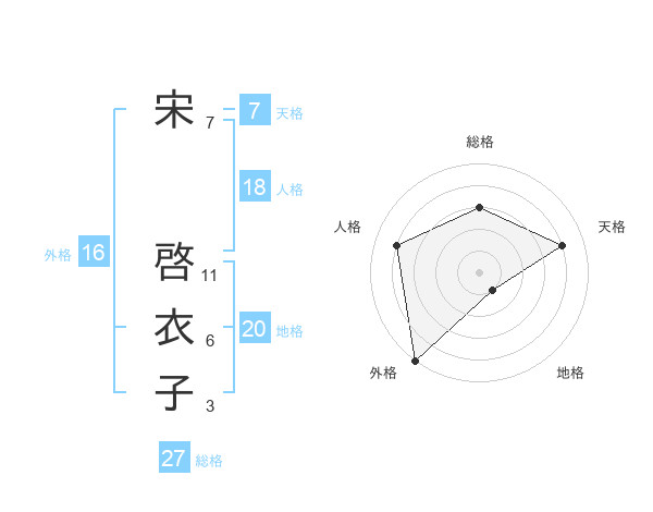 宋 啓衣子さんを姓名の画数から五運を鑑定