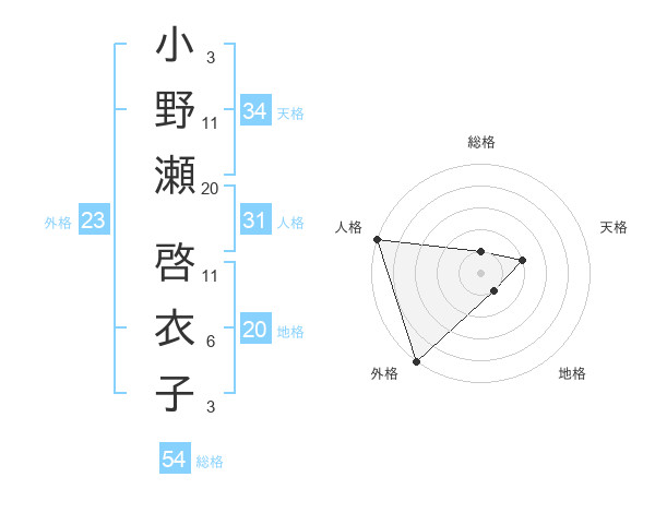 小野瀬 啓衣子さんを姓名の画数から五運を鑑定