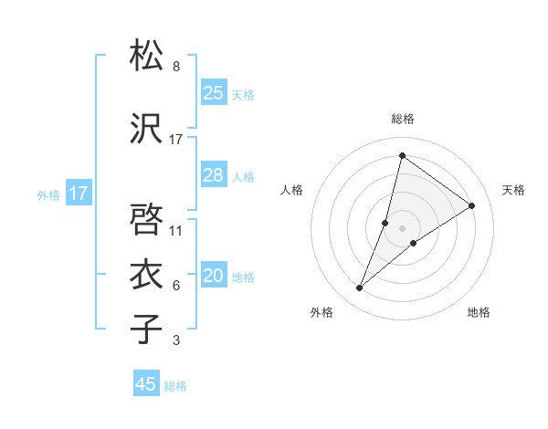 松沢 啓衣子さんの外格は17画の4点!
