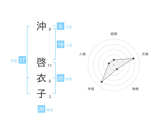 沖 啓衣子さんを姓名の画数から五運を鑑定