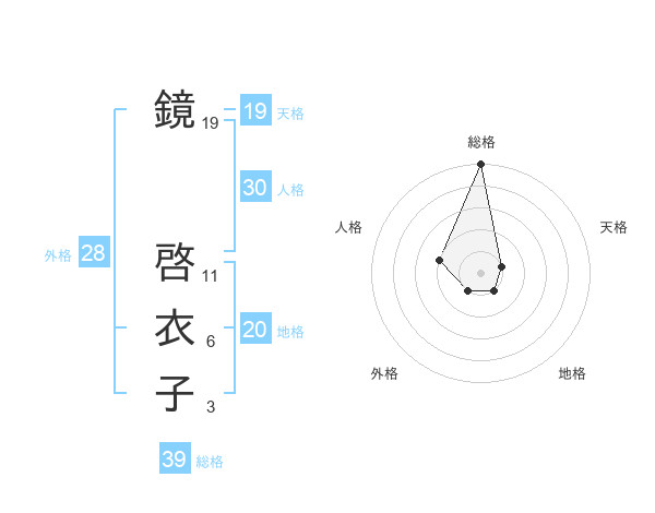 鏡 啓衣子さんの総格は39画の5点!