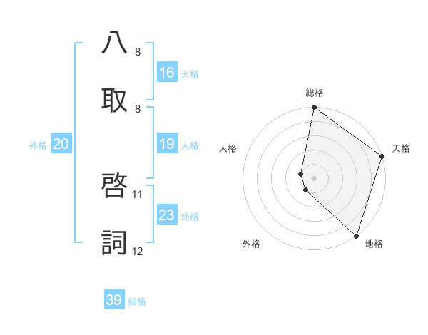 八取 啓詞さんを姓名の画数から五運を鑑定