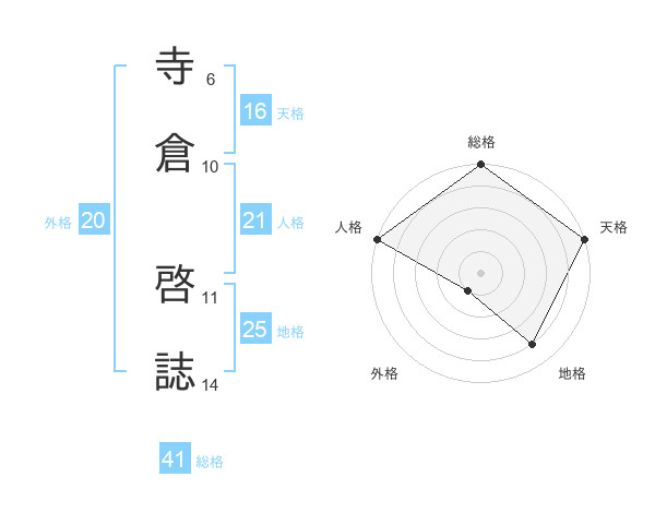 寺倉 啓誌さんを姓名の画数から五運を鑑定