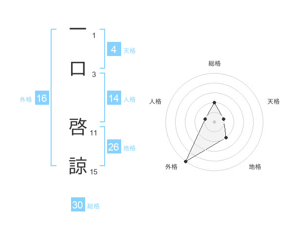 一口 啓諒さんの外格は16画の5点!
