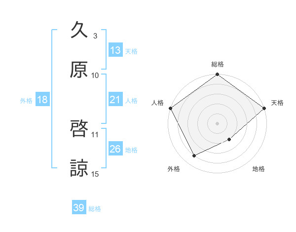 久原 啓諒さんの総格は39画の5点!