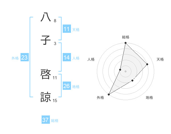 八子 啓諒さんを姓名の画数から五運を鑑定