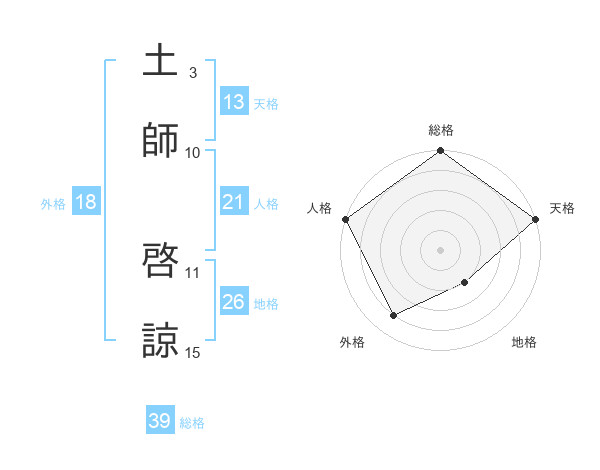 土師 啓諒さんの総格は39画の5点!