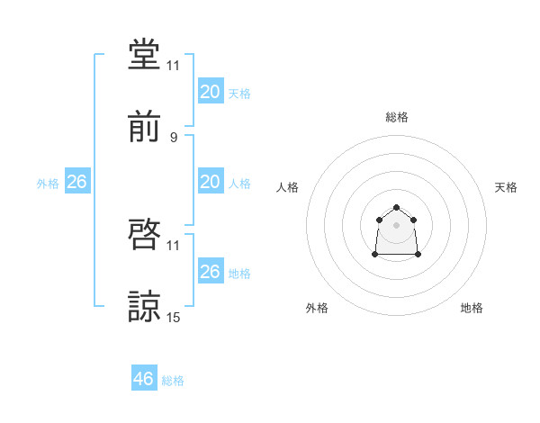 堂前 啓諒さんを姓名の画数から五運を鑑定