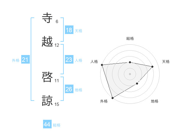 寺越 啓諒さんを姓名の画数から五運を鑑定