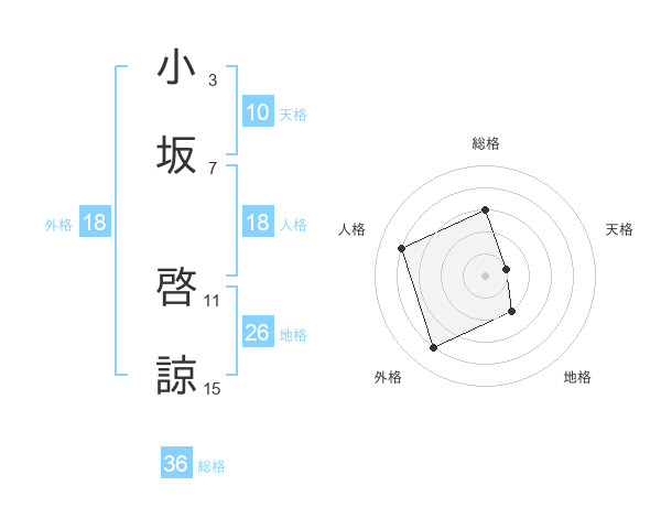 小坂 啓諒さんの総格は36画の3点!