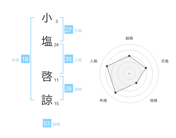 小塩 啓諒さんを姓名の画数から五運を鑑定