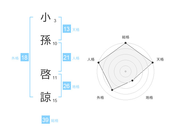 小孫 啓諒さんの総格は39画の5点!