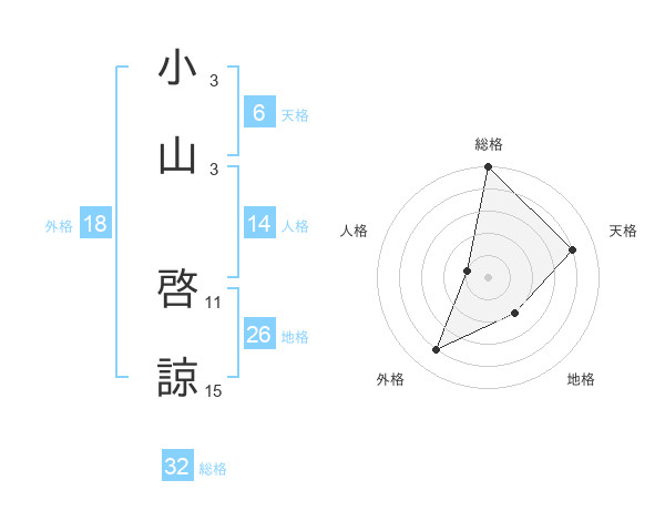 小山 啓諒さんの総格は32画の5点!