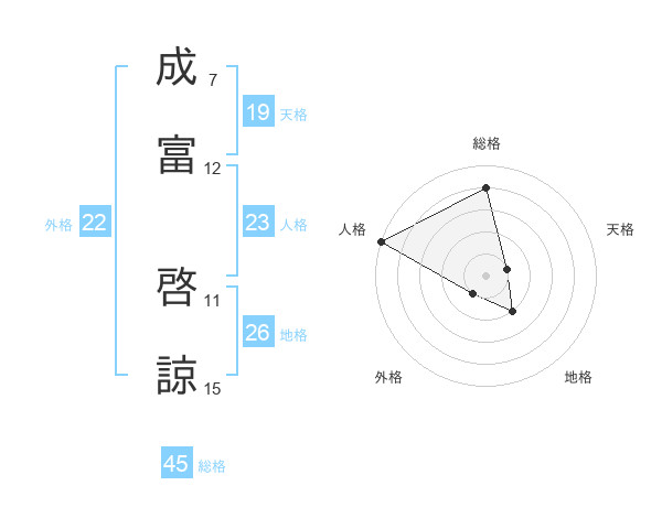 成富 啓諒さんの総格は45画の4点!