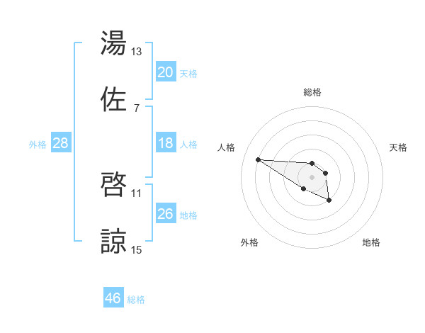 湯佐 啓諒さんを姓名の画数から五運を鑑定