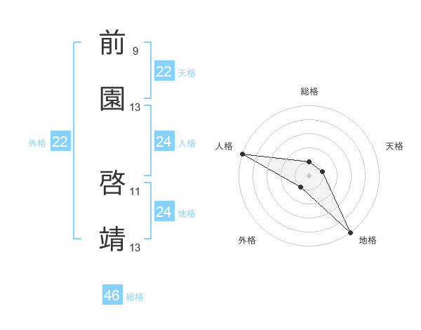 前園 啓靖さんの外格は22画の1点!