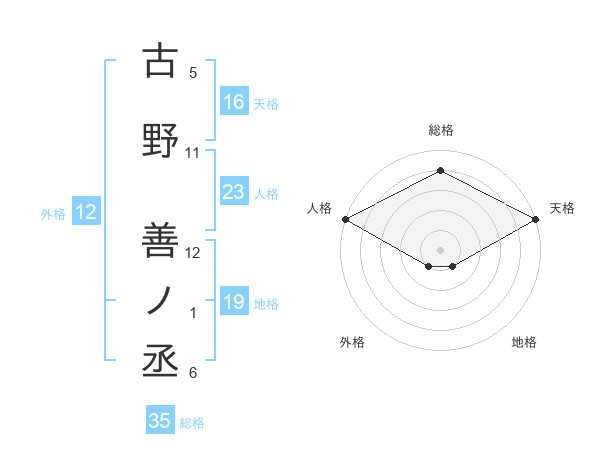古野 善ノ丞さんを姓名の画数から五運を鑑定