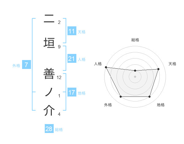 二垣 善ノ介さんを姓名の画数から五運を鑑定
