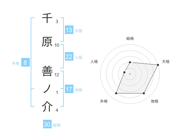 千原 善ノ介さんの天格は13画の5点!