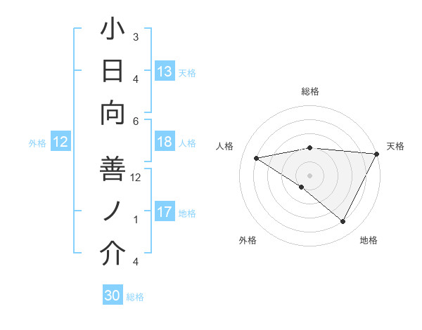 小日向 善ノ介さんの天格は13画の5点!
