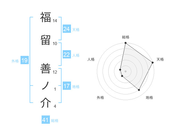 福留 善ノ介さんを姓名の画数から五運を鑑定