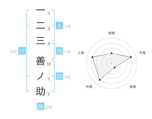 一二三 善ノ助さんを姓名の画数から五運を鑑定