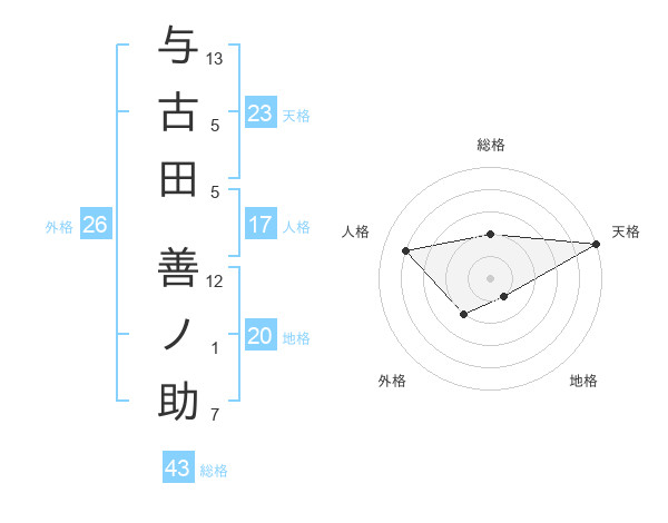 与古田 善ノ助さんを姓名の画数から五運を鑑定