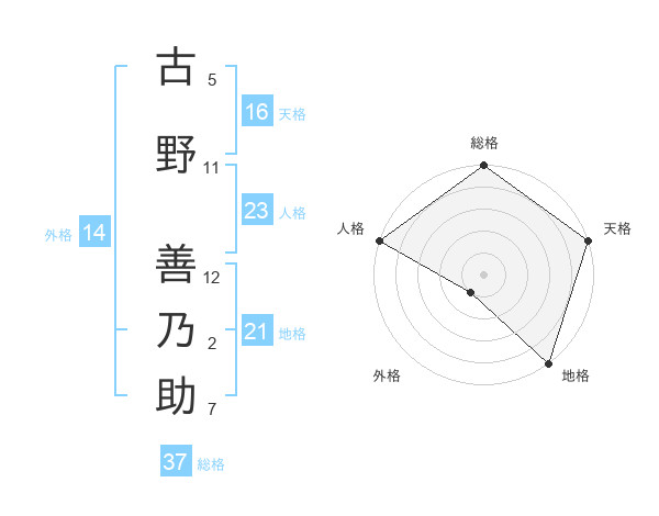 古野 善乃助さんを姓名の画数から五運を鑑定