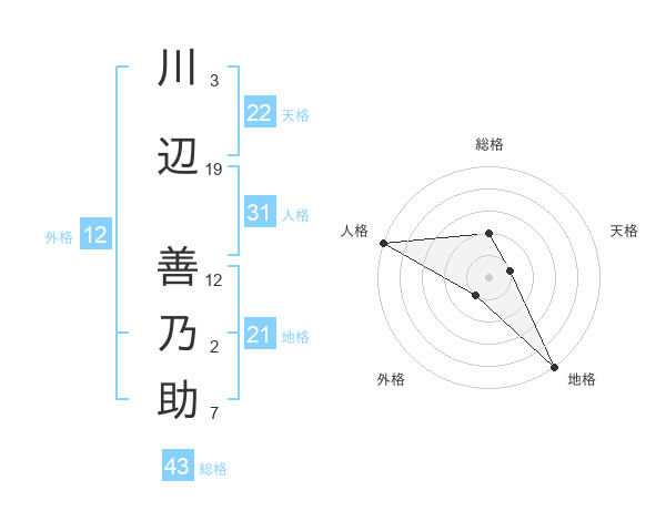 川辺 善乃助さんを姓名の画数から五運を鑑定