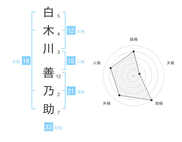 白木川 善乃助さんの総格は33画の4点!