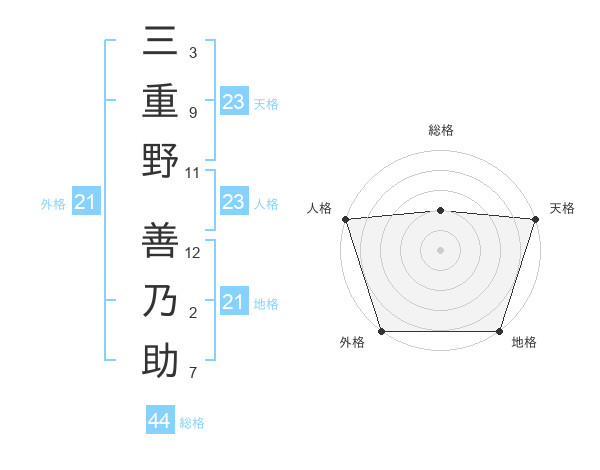 三重野 善乃助さんを姓名の画数から五運を鑑定