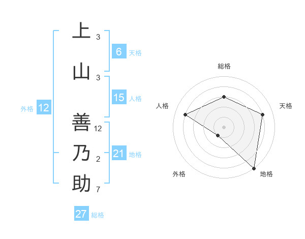 上山 善乃助さんを姓名の画数から五運を鑑定