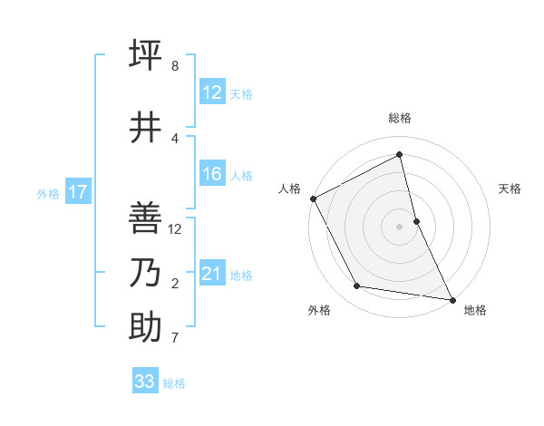 坪井 善乃助さんの地格は21画の5点!