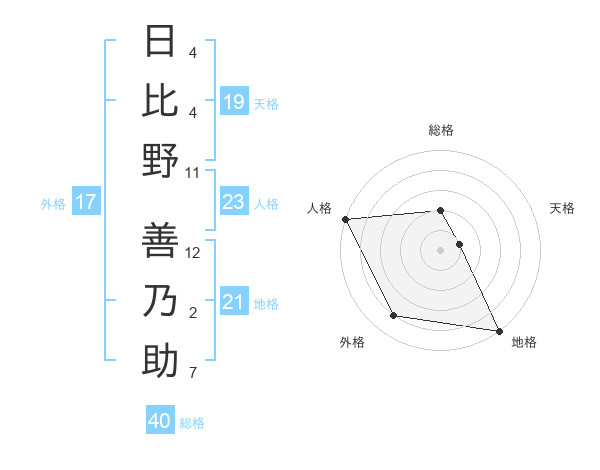 日比野 善乃助さんを姓名の画数から五運を鑑定