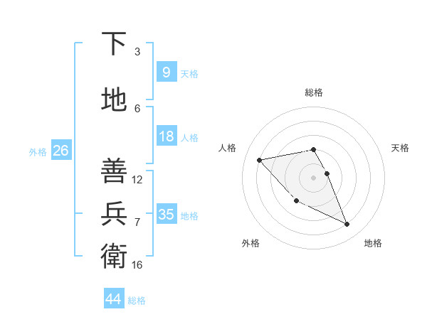 下地 善兵衛さんを姓名の画数から五運を鑑定