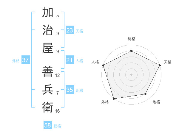 加治屋 善兵衛さんを姓名の画数から五運を鑑定