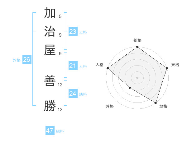 加治屋 善勝さんを姓名の画数から五運を鑑定