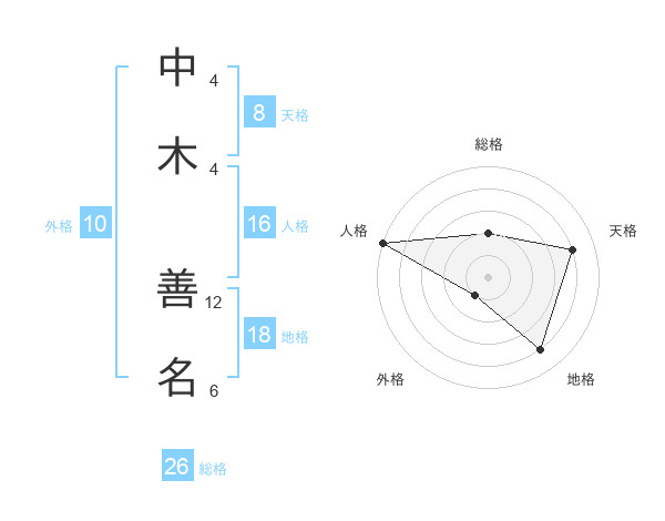 中木 善名さんの天格は8画の4点!